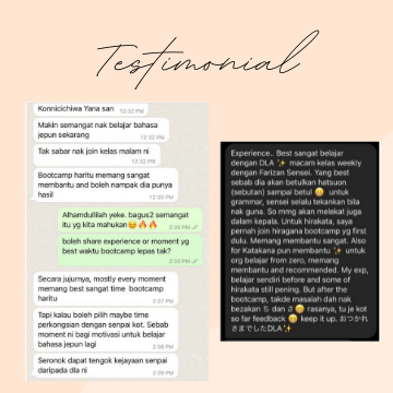 Tiadanya circle yang betul untuk berbahasa Jepun dalam kehidupan seharian menyebabkan saya sendiri tidak sedar akan peluang serta potensi besar yang sedang menanti. Selepas menamatkan Diploma, saya hanya terfikir untuk cuba mencari pekerjaan biasa di rangkaian kedai fast food sekitar kawasan perumah saya. Pertemuaan dengan DLA telah merubah perspektif serta hidup saya. DLA sentiasa mencuba yang terbaik untuk membantu pelajar-pelajarnya untuk menguasai bahasa asing yang sedang dipelajari. DLA bukan sahaja tempat untuk menimba ilmu, malah mereka membantu saya untuk plan ahead & lebih bersedia dalam career serta masa depan saya. Kerana adanya DLA, especially Kayla Sensei, membuka mata saya untuk mencari kerja menggunakan skill yang ada pada diri saya iaitu skill Bahasa Jepun. Alhamdulillah, from Dominos Pizza's rider to Dell's Technical Support Team (Japan Supports). Thank you DLA ā¤ļø
